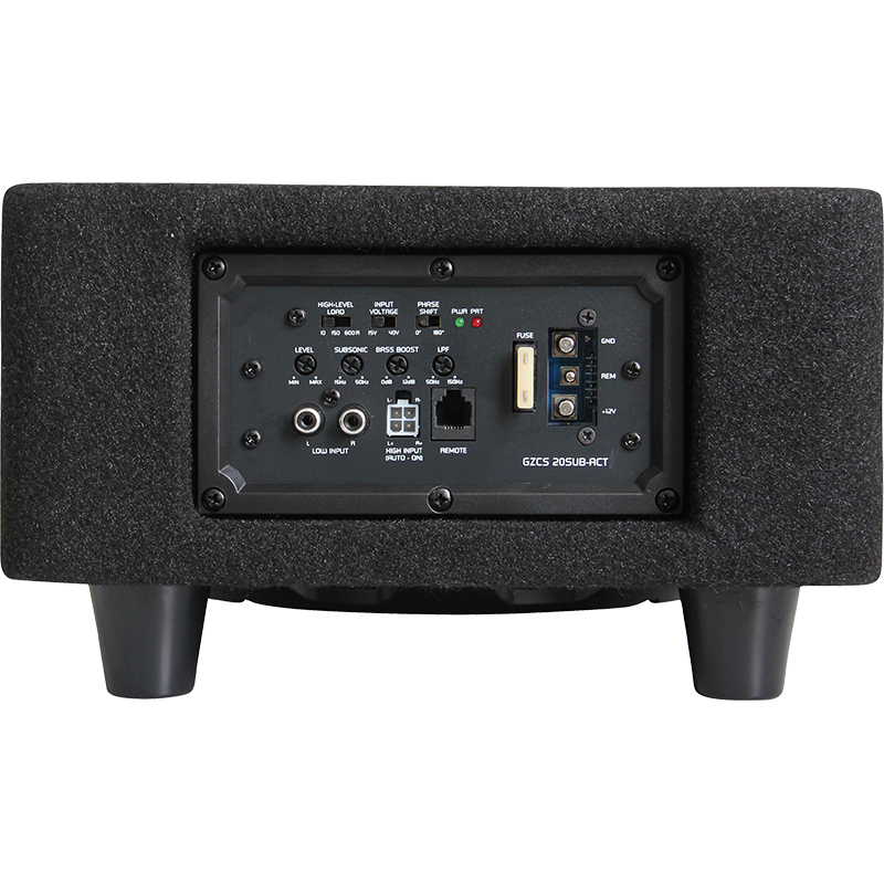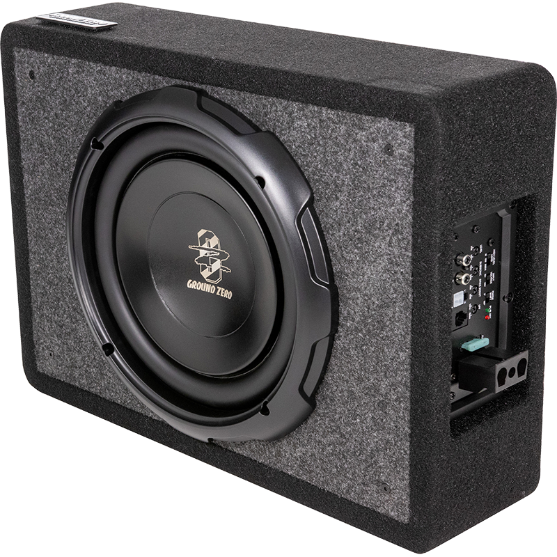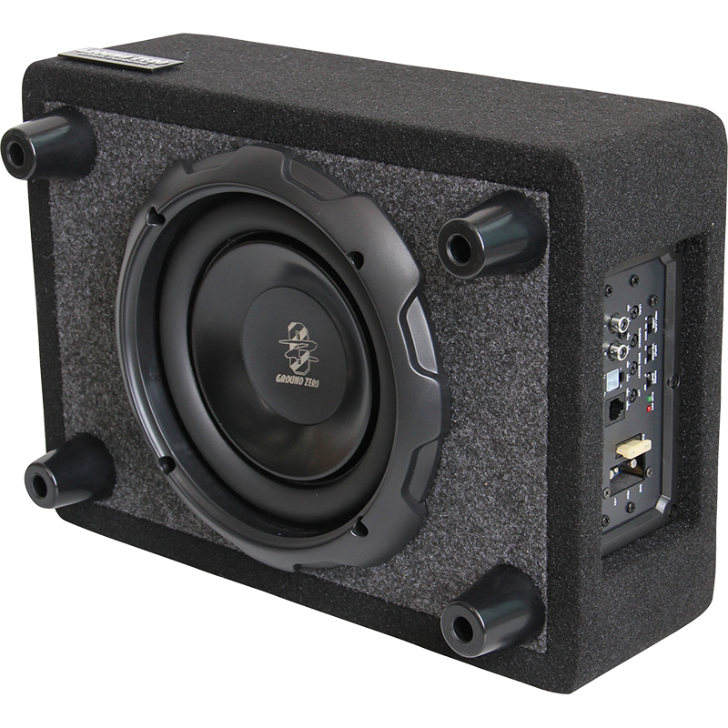 Car specific 20 cm / 8″ subwoofer loaded active enclosure for vehicles with limited space