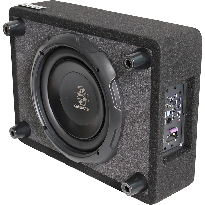 Car specific 25 cm / 10″ subwoofer loaded active enclosure for vehicles with limited space
